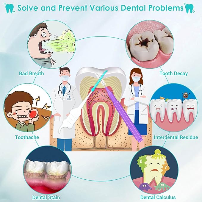 - EFFICIENT TOOTH PICK BRUSHES FOR TEETH: The dental brush picks can be inserted directly between teeth, easily removing food residues and plaque that regular toothbrushes cannot reach. This significantly improves oral clean efficiency, helping to keep your teeth healthy and white. Brushing your teeth with our teeth flossers brushes can effectively prevent various oral problems, keeping you away from issues like bad breath, dental plaque, tartar, yellow teeth, toothaches, and cavities