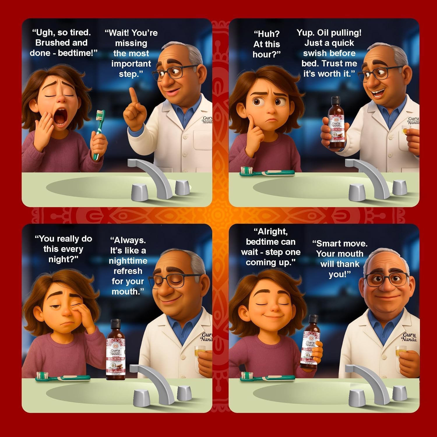 - HOLISTIC ORAL CARE ROUTINE: GuruNanda Ashwagandha Oil Pulling helps to freshen breath, promotes happy gums, and provides a calming oral wellness experience. It’s designed to be a supportive part of your daily oral care routine, complementing brushing, flossing, and other practices.