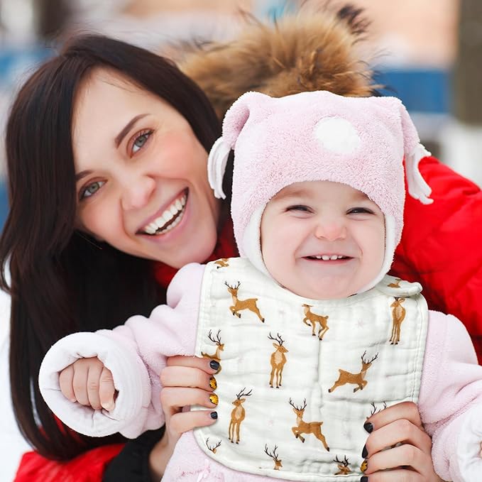 - Multi-Layer Absorbent: Baby bibs are designed with 6 layers of soft cotton fabric to absorb liquids and keep baby's clothes and skin dry.
