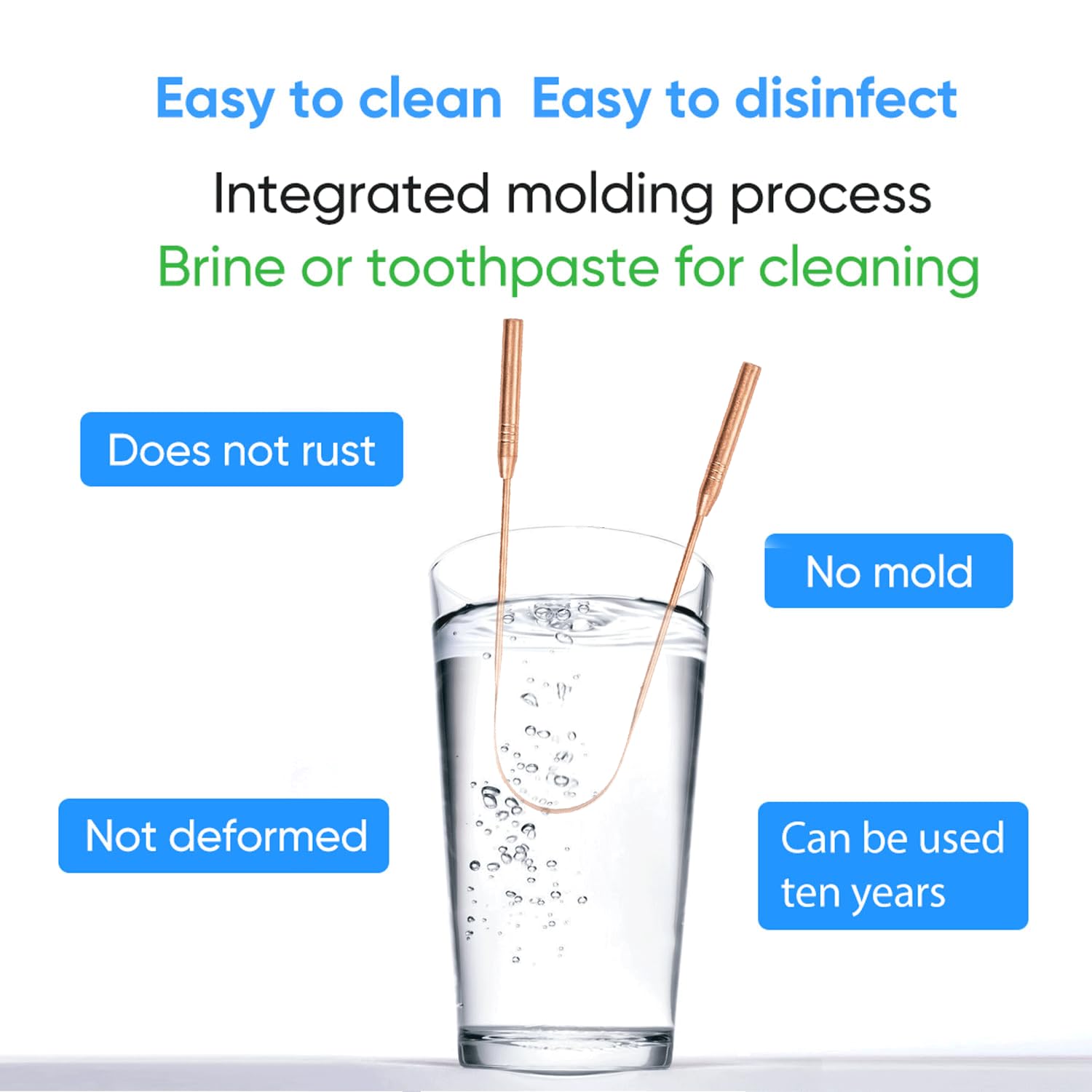- ✅Premium Materials: Copper has natural cleansing properties which helps makes your tongue scraping even more effective. Our tounge scraper made of 100% pure copper materials, rust-proof, durable and long lasting usages. Tongue scrapper with copper material is also easier to clean, simply rinse with water and put them in the brushing cup. So, why waste money on cheap plastic tongue cleaner, get your first copper tongue cleaner and go have a healthier life and confident social life!