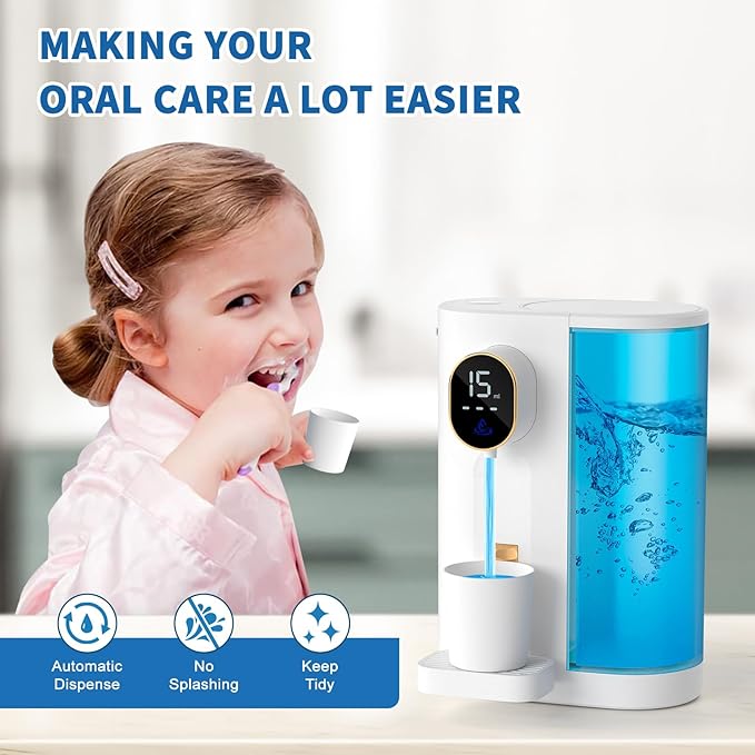 - 【UPGRADED DISPENSING SYSTEM & LED SCREEN DISPLAY】To avoid the issue of mis-sensing and no-sensing caused by other automatic sensing mouthwash dispensers, we upgraded the dispenser with one-click button. After setting the desired the level, slightly click the dispensing button with cup to start dispensing, It stops automatically when it's done. If you set unlimited level, hold the button to start, release the button to stop. It's more reliable, accurate and controllable. The Led -screen display of the dispensing volume and remaining power is clear at a glance.