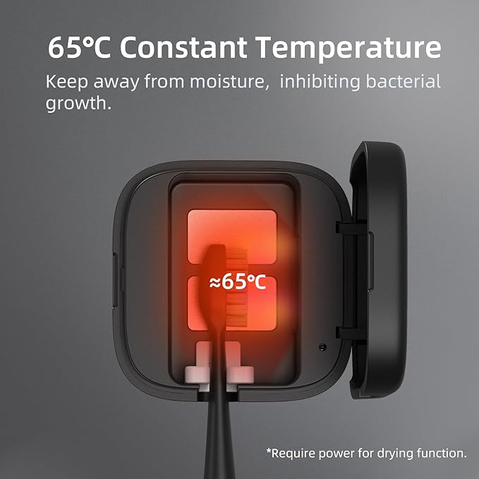 - 💗【Smart Automatic Sensor Design - 3 Mins】The portable toothbrush cover with uv light adopts a fully automatic UV design. It can automatically work for 3 minutes each time by just close the cap. Warm air heating design for thorough toothbrush drying (Note: The heating function needs to be plugged in to work). When the cover is opened, the toothbrush holder auto stop working to protect you and your family.