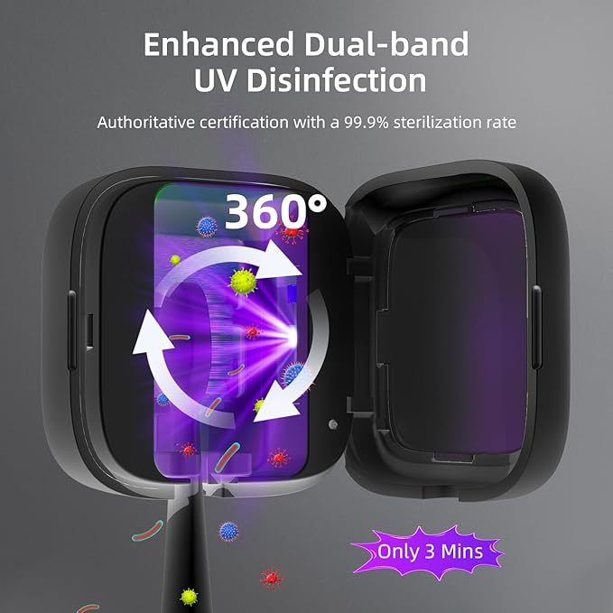 - 💓【Suitable for 99% Toothbrushes】Smart UV toothbrush case comes with adjustable silicone clips, making it easy to use whether it's an electric toothbrush or a normal toothbrush. It is a perfect gift for friends, family, the elderly, and children. Please contact us if you have any worries or after-sale questions, we will reply to you as soon as possible within 24 hours.