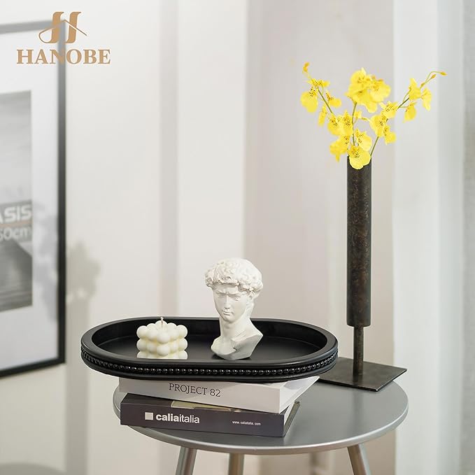 Hanobe Decorative Trays for Coffee Table : Black Oval Centerpiece Tray Wood for Farmhouse Entry Table Decor Round Bathroom Tray for Living Room Kitchen Counter