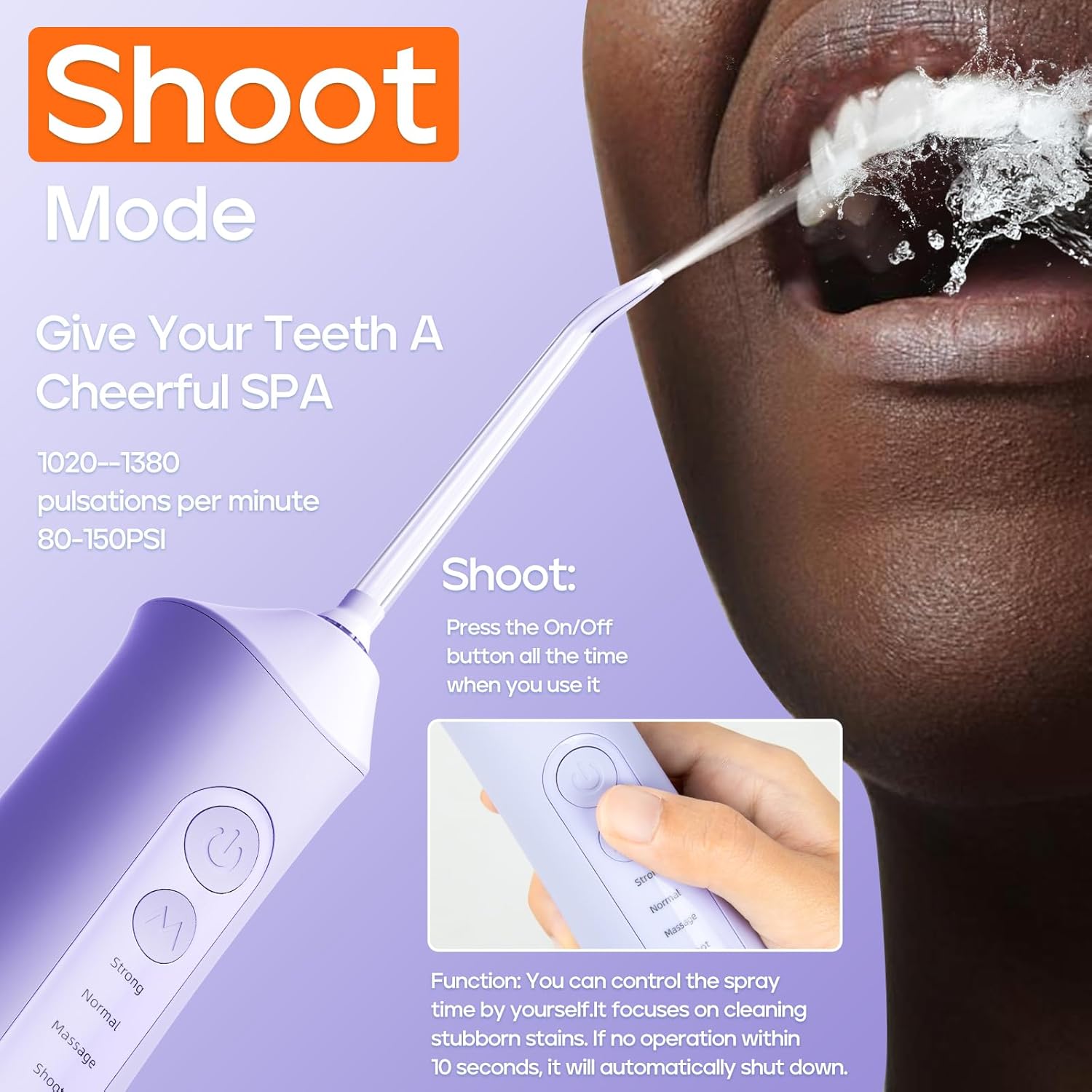 - Superior Cleaning Results: This portable cordless water flosser is powered by a top-of-the-line power motor that runs 1020-1380 times per minute and delivers 80-150 PSI of pressure, removing 99.9% of deep plaque and food debris while massaging your gums. It also helps with braces and bridge care and helps treat bad breath