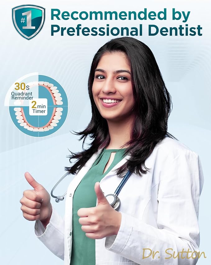 - Smart Vibrating Alert Timer & IPX7 Waterproof - The built-in smart timer features 30-second intervals to remind you to move to the next quadrant of your mouth, totaling 2 minutes for complete coverage. This ensures you achieve the scientifically recommended brushing time. With an IPX7 waterproof design, it ensures reliable protection against accidental water submersion and allows for safe use in wet environments, such as bathrooms or during showers.