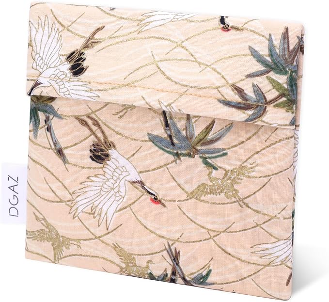 DGAZ Sanitary Napkin Storage Bag, Period Bag for Teen Aged Girls, Portable Period Bag for Panty Liners/Menstrual Cup/Small Tampons,Mini Makeup Bag for Purse(Fairy Crane)