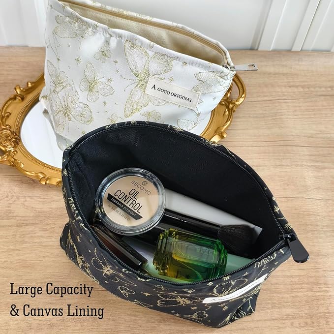STARDW Aesthetic Floral Makeup Bag Cute Small Cosmetic Bags for Women Girls, Travel Toiletry Bag Large Capacity Zipper Makeup Pouch, Purse Organizer Pouches (Butterfly White)