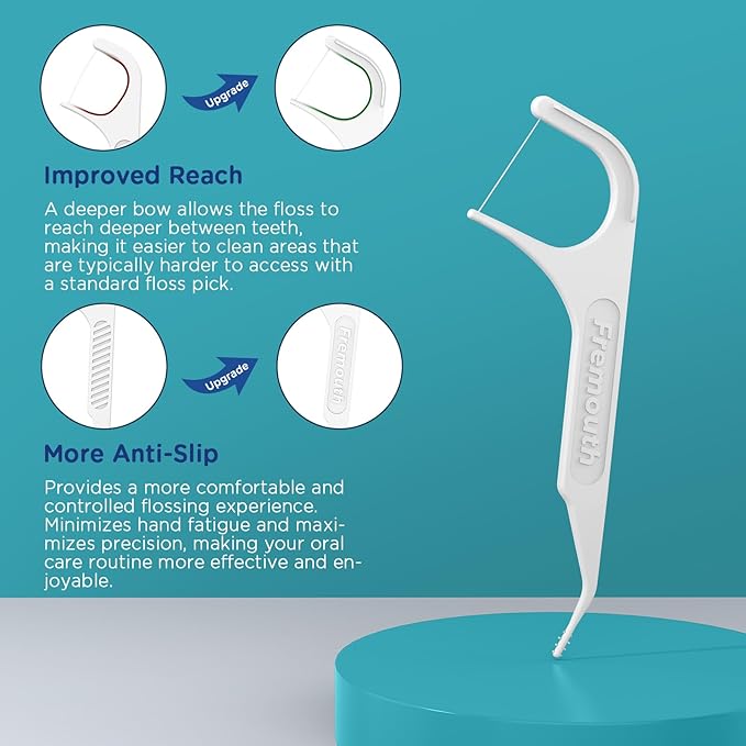 - IMPROVED REACH: A deeper bow allows the floss to reach deeper between teeth, making it easier to clean areas that are typically harder to access with a standard floss pick.