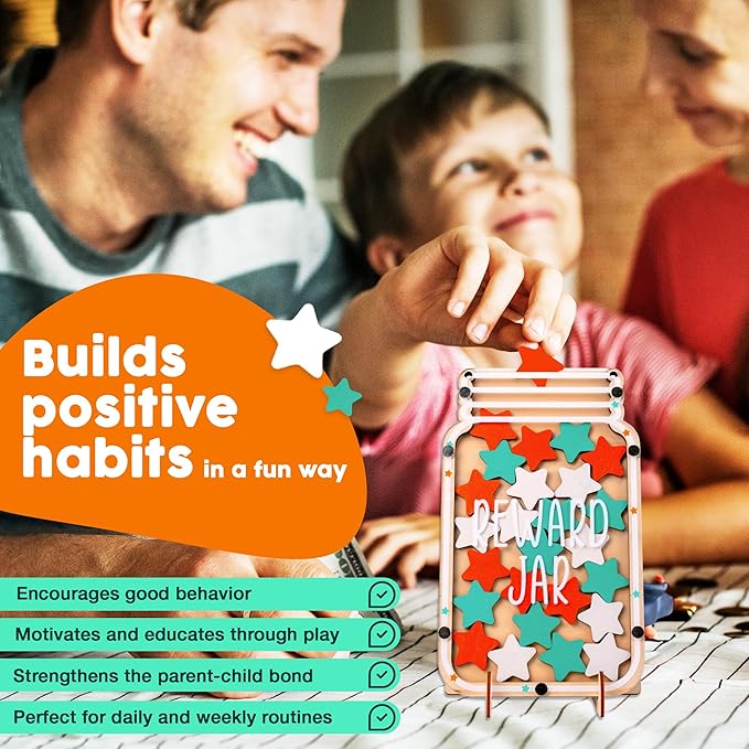 - ⭐ STRENGTHENING FAMILY BONDS – The kids' reward jar reinforces the connection between parents and children, promoting teamwork and motivation. Ideal for rewarding behavior, encouraging bedtime routines, or as a goal-setting tool at home or in the classroom.