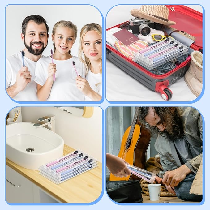- EASY TO CARRY: Good for travelling and camping lovers, inn and motel owners, ourt travel toothbrush kit is good for you to apply, you can carry some of these toothbrushes in your bags or suitcases, place it in your room, no need to wash and clean after using, they are disposable. Easy to take anywhere. Perfect for use in hotels, travel, airline, home, sanitary and so on.