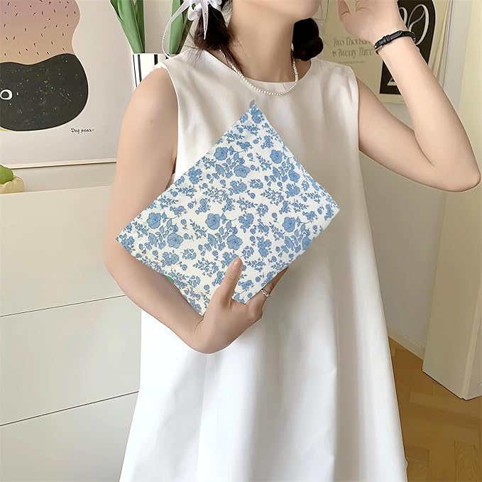 STARDW Aesthetic Floral Makeup Bag Cute Small Cosmetic Bags for Women Girls, Travel Toiletry Bag Large Capacity Zipper Makeup Pouch, Purse Organizer Pouches (Floral Blue)