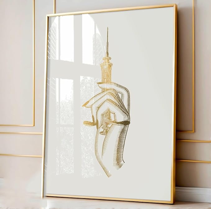 NATVVA Canvas Painting 3 Pieces Syringe Thermometer Stethoscope Art Posters Med Student Gold Prints Wall Art Pictures for Clinic Decor with Wooden Inner Frame