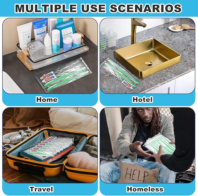 - MULTIPLE USE SCENARIOS:Office toothbrush floss kits are individually packed so they don't take up too much space. Applicable to hotels, guest travel, aviation, home, bathroom and other places, also applicable to the homeless, hotels, women's shelters, Airbnb, dental clinics, pet hospitals,OCC-Operation Christmas Child,etc.