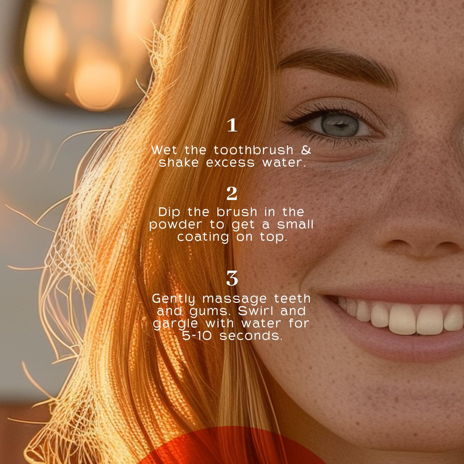 - Wake Up With A Smile - Our powdered toothpaste leaves your mouth feeling fresh, this teeth powder can be used by itself or as a booster to your favorite flavored toothpaste