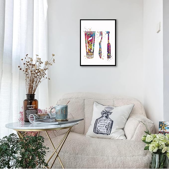 HFKSRJGW Medical Wall Decorations,Dental Care Tools Watercolor Print Tooth Medical Art Surgeon Dental Clinic Decor Gift Dental Dentist Dentistry Office Dental Hygienist,16"x24"Framed Wall Art