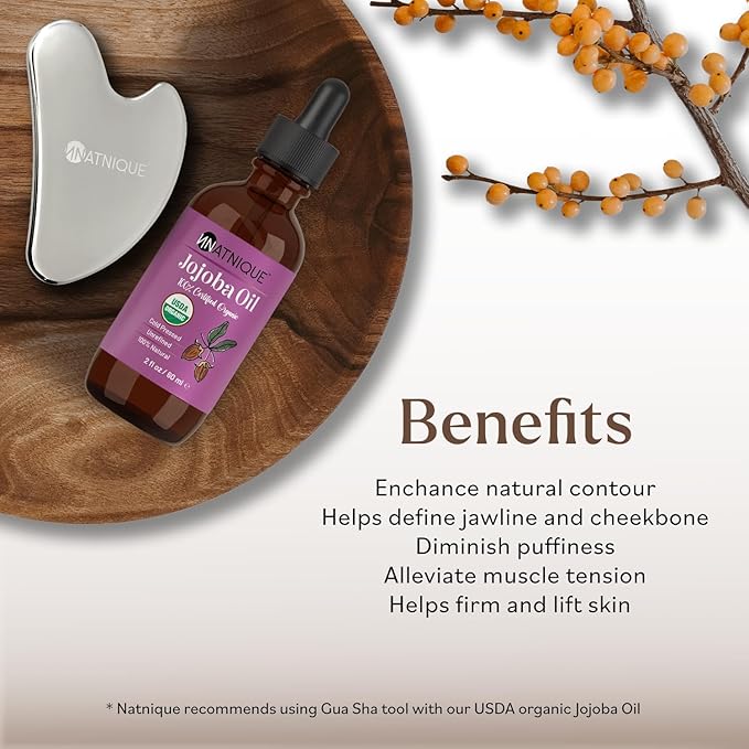 Natnique Stainless Steel Gua Sha Tool – Face & Neck Sculpting Massager for Lymphatic Drainage, Puffiness & Jawline Contour – Anti-Aging Facial Tool for Wrinkles, Firming, Relaxation & Cooling Relief