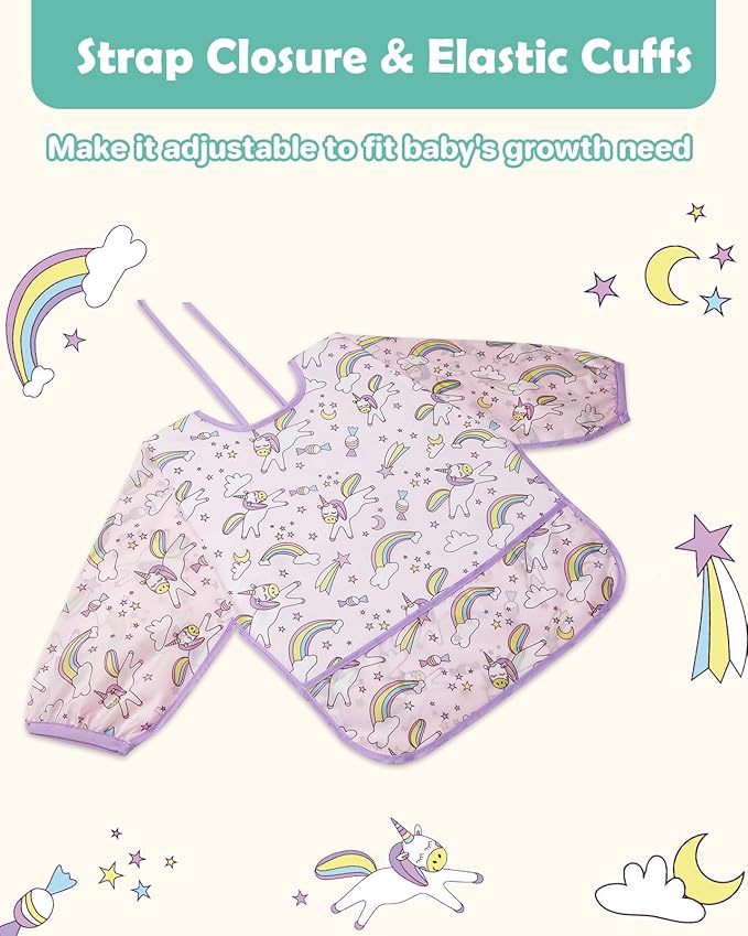 - Comfortable and Secure Fit: Our baby long sleeves bibs feature elastic cuffs and adjustable neck straps, ensuring a comfortable and secure fit. Designed for babies aged 6-24 months, these bibs provide maximum comfort and flexibility for your little one