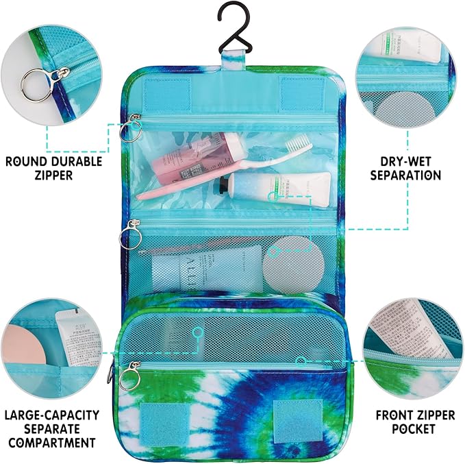 Tie Dye Hanging Toiletry Bag for Girls, Travel Toiletry Bag for Teen Girls Cosmetic Makeup Waterproof Wash Bag Traveling Toiletries, Blue