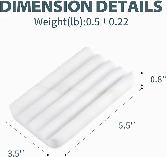 - EXCELLENT DESIGN: Square bar soap dish for holding soap, designed in a wave shape with raised edges. This soap dish drains the soap effectively, preventing it from slipping out and keeps soap clean and dry. The heavy marble soap holder comes with 4 non-slip pads, the pads are under the box for better water leakage.
