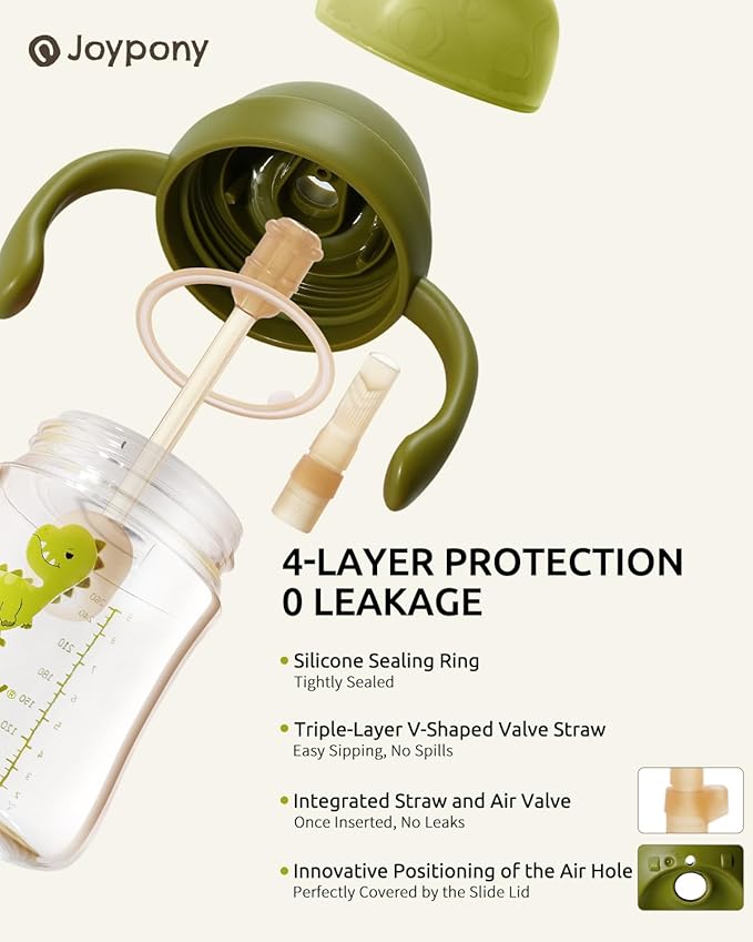 - 【Simple to Use & Clean】Joypony toddler cup is designed for effortless use, featuring easy assembly, disassembly, and cleaning. The wide neck and less parts make it clean easily, simplifying your cleaning routine while promoting your baby's independence and coordination