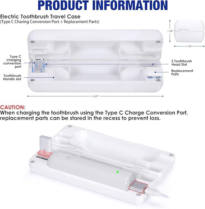 - [Rechargeable and magnetic] New upgraded version with magnetic design and with Type C charging conversion port. When you go out, you don't need to bring the original toothbrush charging cable. You only need to bring your cell phone charging cable and toothbrush travel case.