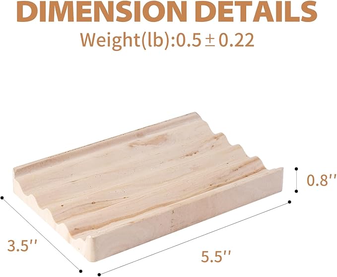 - EXCELLENT DESIGN: Square bar soap dish for holding soap, designed in a wave shape with raised edges. This soap dish drains the soap effectively, preventing it from slipping out and keeps soap clean and dry. The heavy marble soap holder comes with 4 non-slip pads, the pads are under the box for better water leakage.
