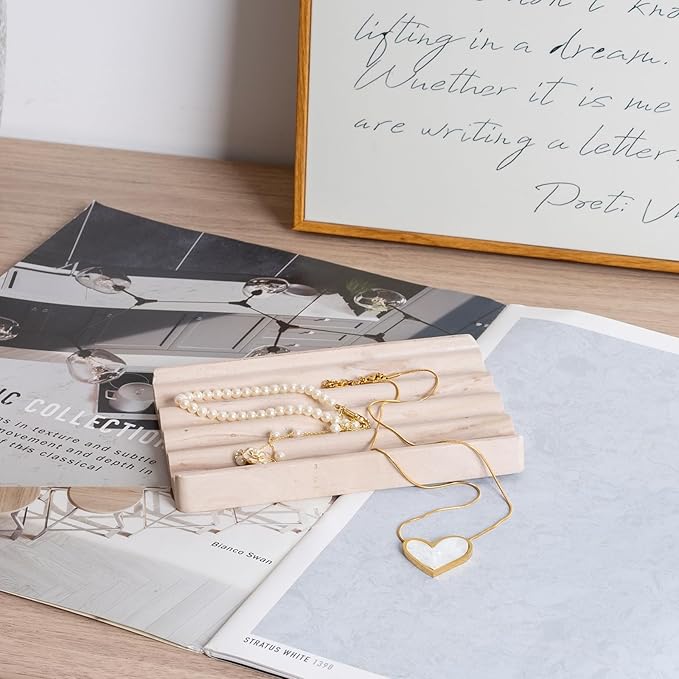 - STURDY AND MODERN: The stone soap dish oval concave design measures 4.7 inches by 2.7 inches and is suitable for most bar soaps on the market. High-quality marble material ensures the shower soap holder is long-lasting and durable, won't lose the luster of the mabrle soap dish surface over time.