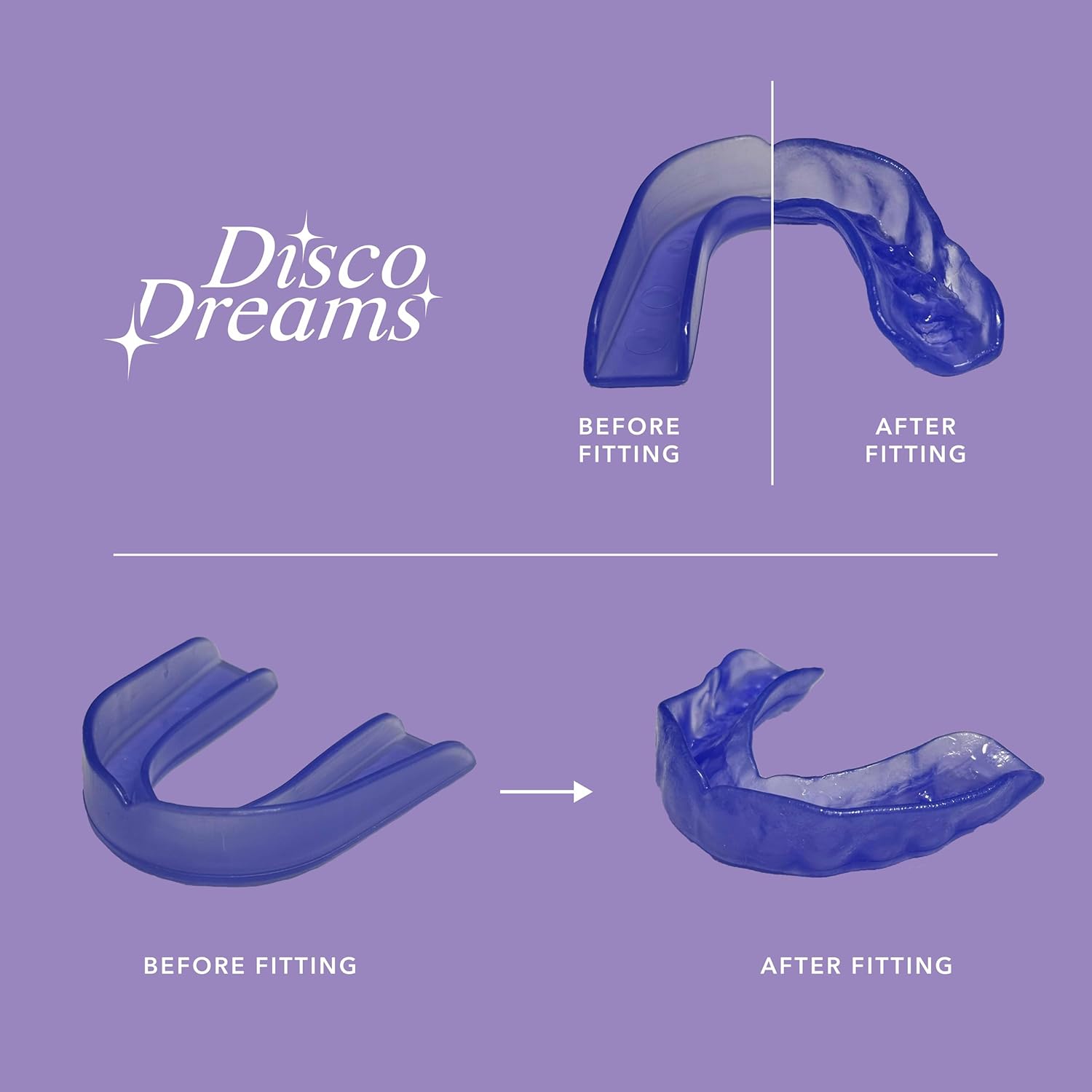 - PERSONALIZED FIT: The Disco Dreams Night Guard provides a personalized fit for your teeth, as individualized as your dance style, molding perfectly to your teeth like a flawless rhythm. Designed with the same precision as a custom dental fit, these guards ensure a snug form that stays secure throughout the night, ensuring comfort without missing a beat.