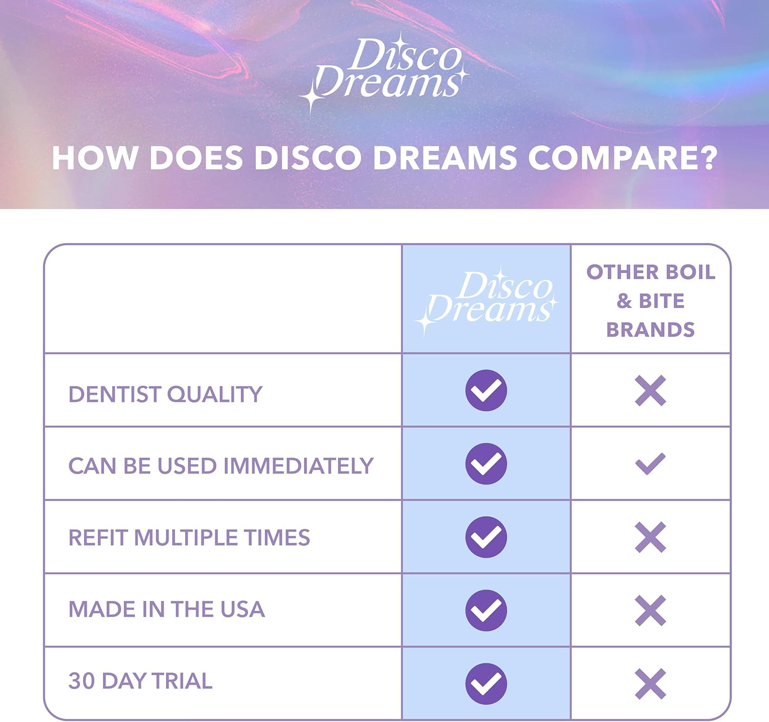 - IDEAL NIGHTGUARD: Soft, safe, and incredibly comfortable, Disco Dreams Night Guard is as soothing as it is stylish, crafted from gentle, secure materials that provide a dream-like experience for your teeth. Its well-engineered design ensures ideal comfort and convenience, featuring a rapid fitting process that's as effortless as warming in the microwave.