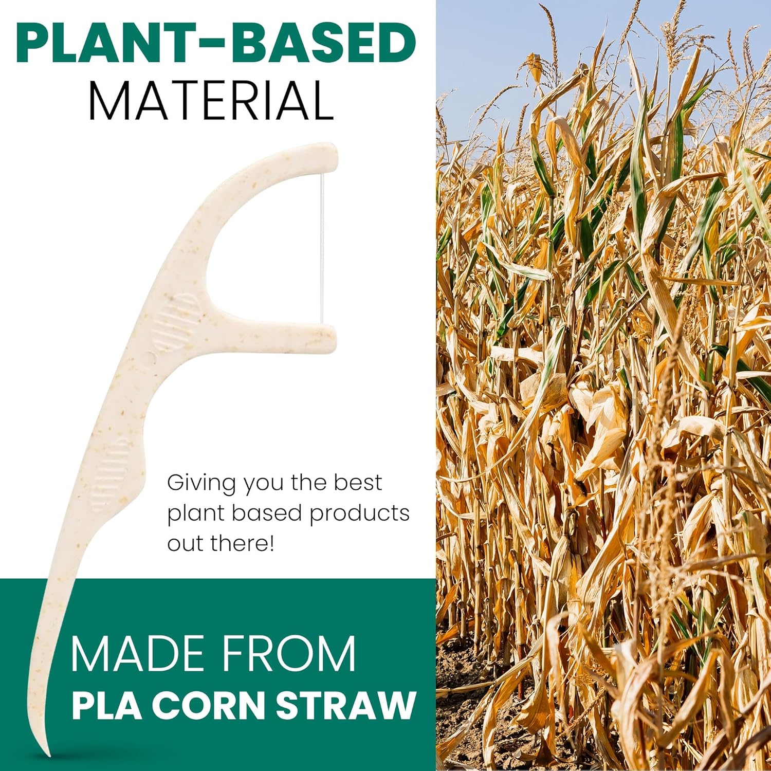 Biodegradable Dental Floss Picks for Teeth, 200 Count, Corn Straw Floss Picks, PFAS Free. Unflavored Flossers, Plant Based, Shred Resistant Floss for Adults & Kids