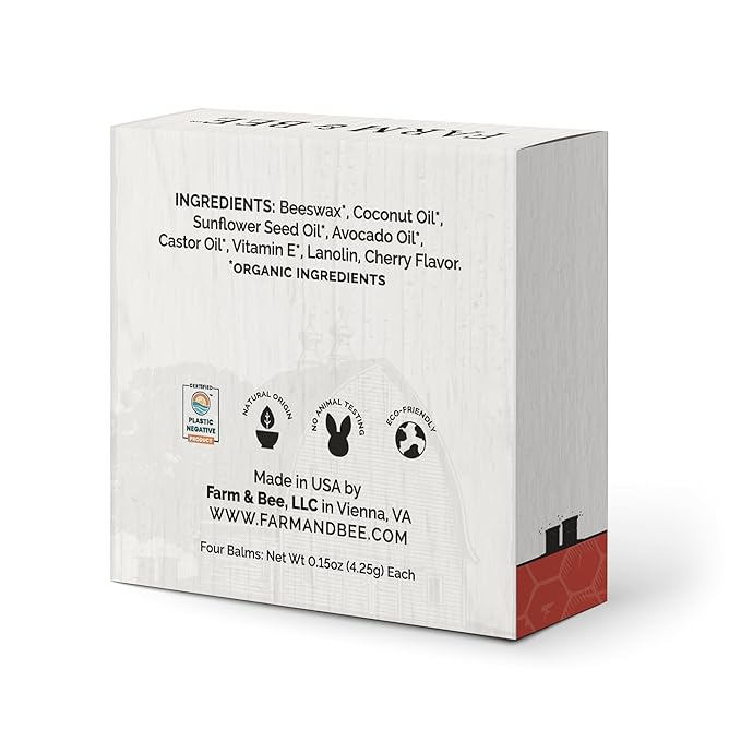 Natural Lip Balm - Organic & Natural Ingredients - Beeswax Based Moisturizing Lip Care Chapstick for Chapped Lips - Great Gift Idea - Farm & Bee - 0.15oz (Pack of 4 - Cherry)