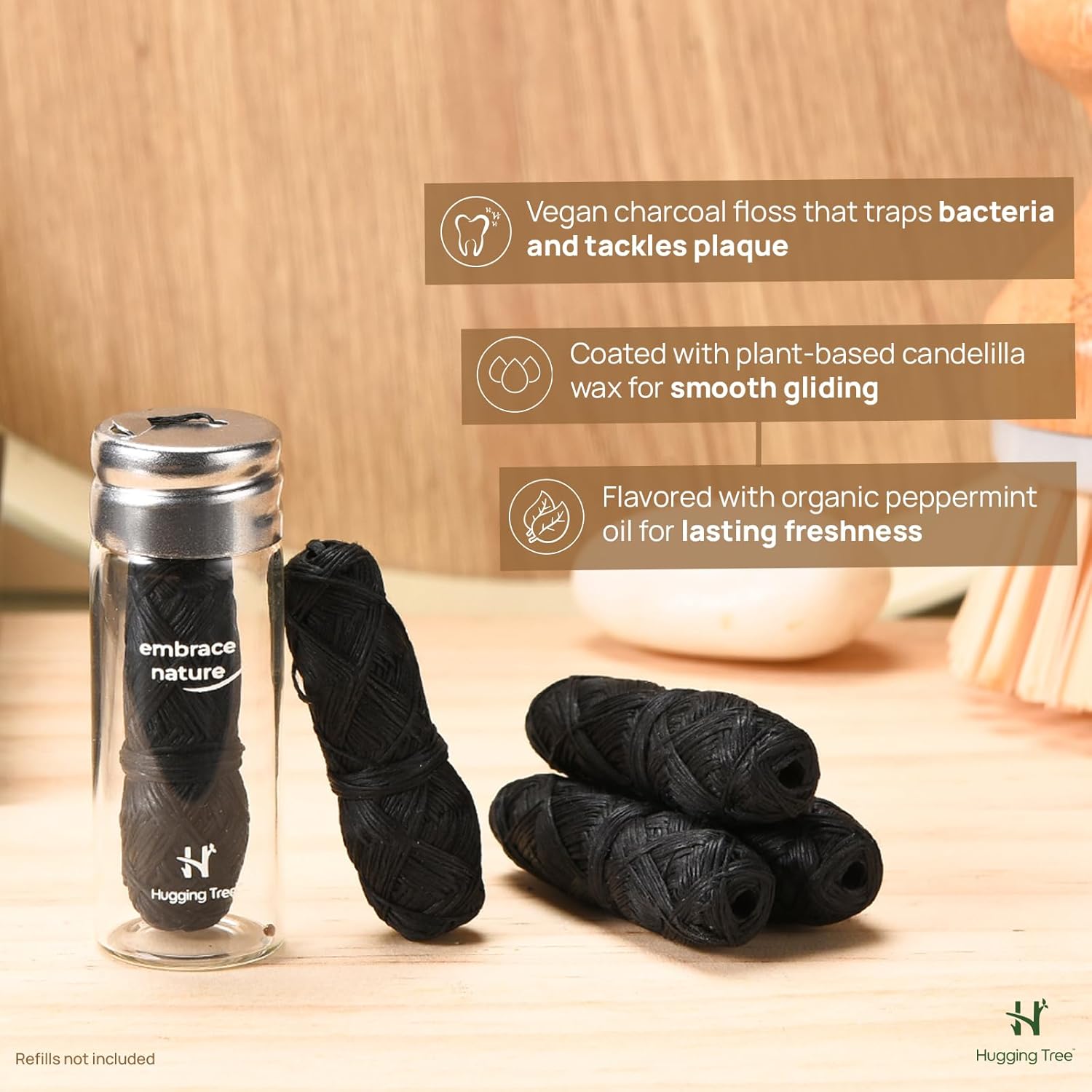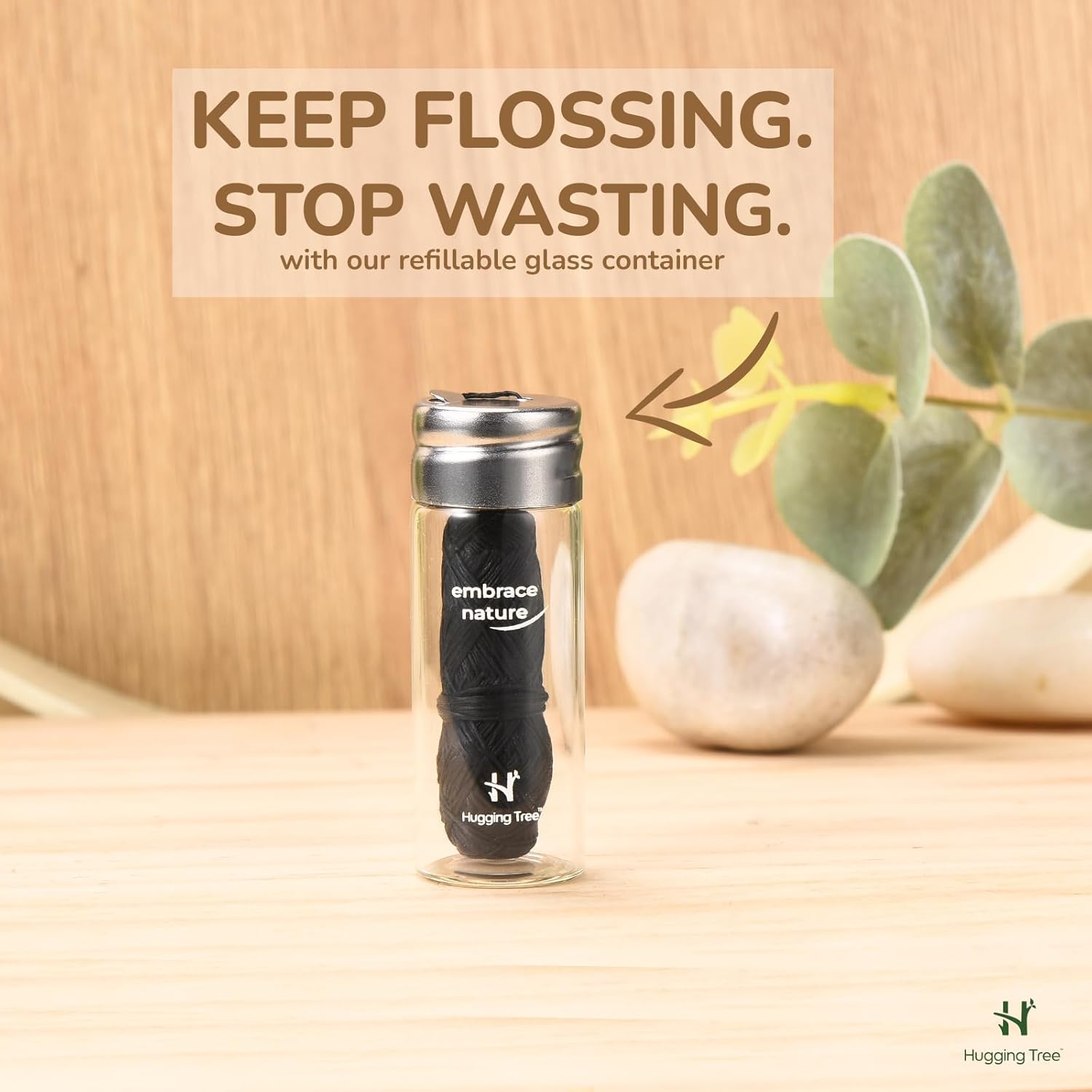 - KEEP FLOSSING. STOP WASTING: The refillable glass dispenser that comes with the charcoal floss is built for reuse with our floss refills. Just refresh, refill, and repeat.
