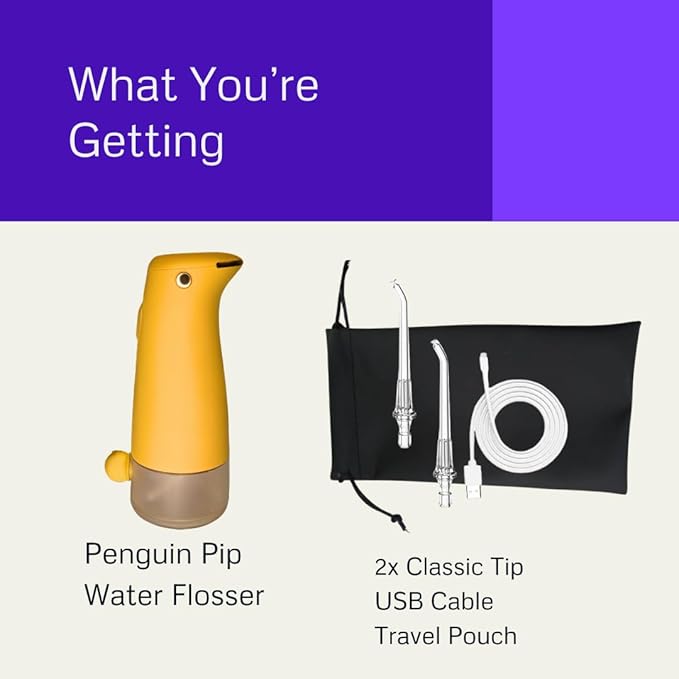 - [One-Touch Operation, Memory Function, And Auto Shut-Off] Our Penguin Pip Water Flosser is designed with a one-touch button and a convenient memory function, making it incredibly user-friendly, even for small kids. The one-touch button allows for easy operation with just a single press, while the memory function ensures the flosser remembers the last used setting. Additionally, it features a 2-minute auto shut-off function, encouraging efficient brushing time and giving peace of mind. This simplicity means even the youngest family members can confidently and effectively use the flosser, promoting independent dental care from an early age.