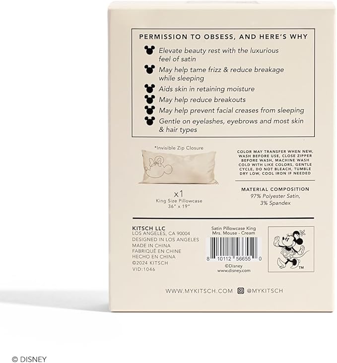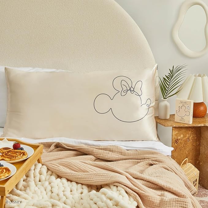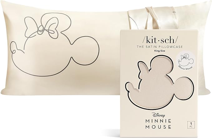 Kitsch & Disney Minnie Mouse Satin Pillowcase with Zipper Softer Than Silk, Cooling Pillow Case for Hair & Skin, Wrinkle-Free, Machine Washable, King Size (19x36)