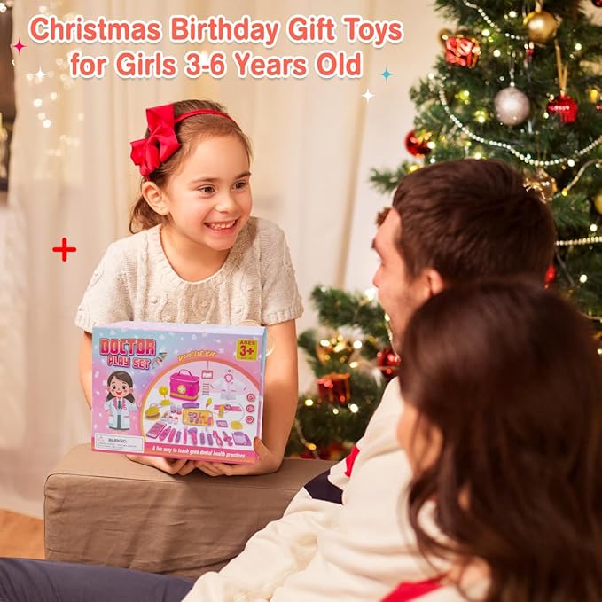 - A Surprise Birthday/Christmas Gift & Girl Toys for Kids. This exquisite kids toys has well cute packing box, it is a good choice of 3-6 year old girl gifts or Christmas gift for girls, the big medical bag can hold all the doctor tools, learning about dentistry while exercising children's storage skills, Suitable for girls aged 3-6 years old.