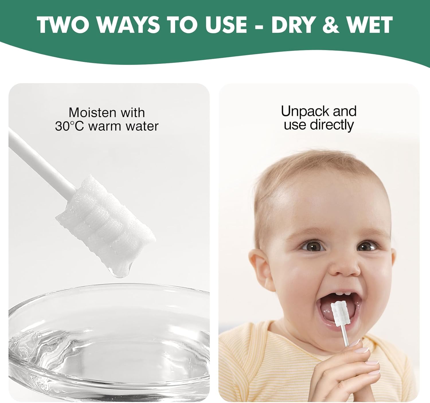 - 【Professinal Design】Soft absorbent gauze is comfortable to use, fit baby's gums, no fluorescent whitening agent, no taste. The Paper handle is sturdy, flexible and enough long to easily reach every part of your baby’s mouth.