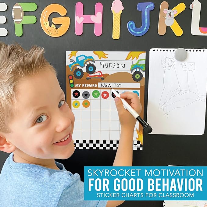 - If You’re Looking To Unlock Hidden Motivation Within Children, Then you need these truck sticker charts for classroom incentives: Keep your kids on track with these USA made daily chore chart for kids