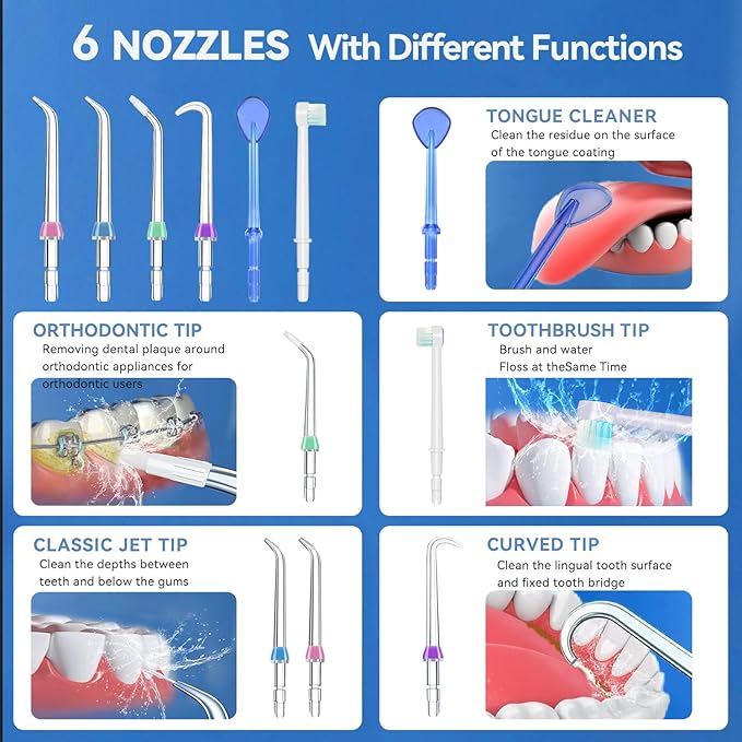 - Water Flosser Repacement Heads Accessories: Step up your oral care game with our water pick water flosser replacement heads. 51% more effective than string floss. Trusted by dentists nationwide!