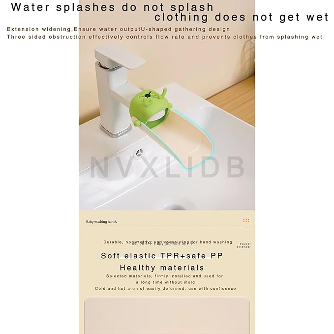 - [Exquisite workmanship] NVXLIDB cartoon-themed faucet extender for toddlers. Exquisite workmanship and cute pet companionship. Let your baby get one step closer to the faucet and fall in love with washing hands