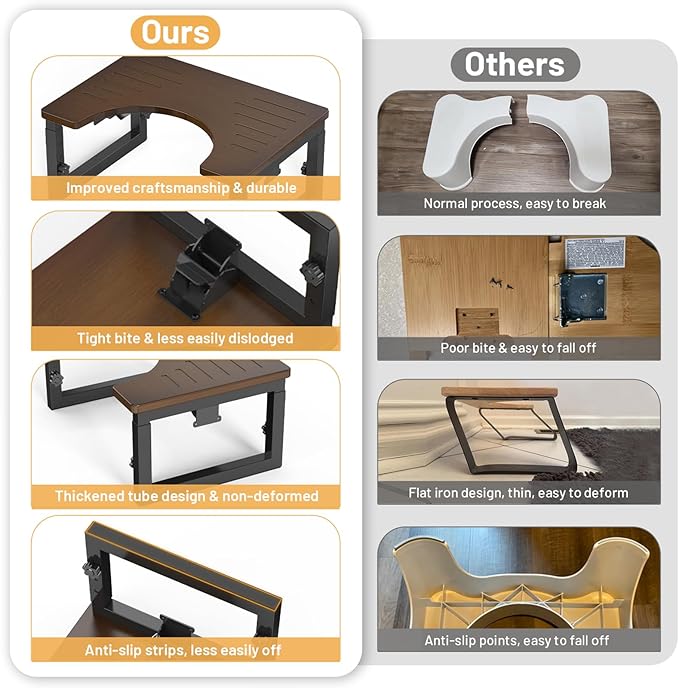 - Non-slip Upgrade: Poop stool adult legs with rectangular design to increase the contact surface, then non-slip strips cover whole surface, overlap the non-slip effect. An extra pair of non-slip pads for emergency use is also provided.