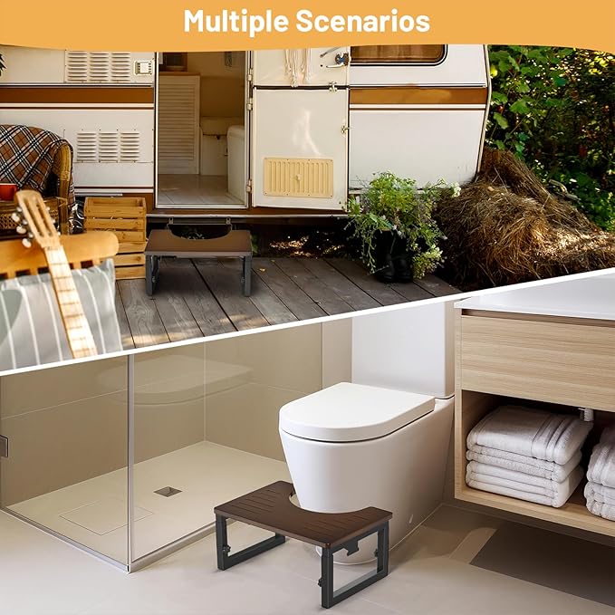 - Easily Folded & Stored: Folds or open pooping stool in only 3s and folded thick only 2.75 inch, storing or carring out it made easier, you can store it easily in the corner of the bathroom or RV. coating process water-proof and easy to clean.