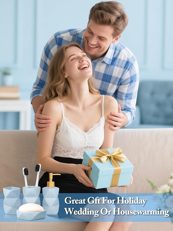 - Perfect Gift Choice:Looking for a perfect gift for housewarming or a holiday present? This 4-piece bathroom gift set is an excellent choice! Beautifully designed, it’s ideal for Christmas, birthdays, weddings, or Mother’s Day. Give the gift of style and function with this elegant blue ceramic set