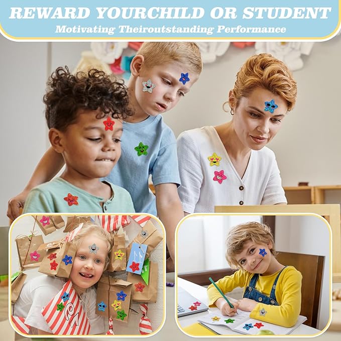 - 【Smiling Star Stickers】: Our incentive reward stickers are made of water-repellent metallic foil, which is not easy to bend and tear,Vibrant colors and glitter effects appear, looking very cute