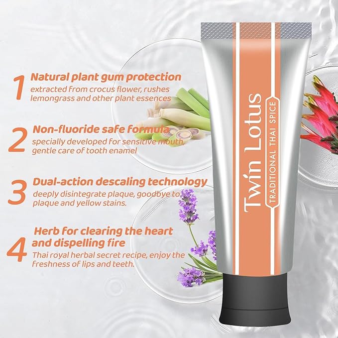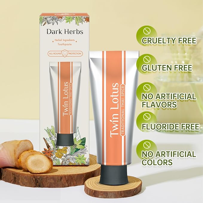 Twin Lotus Natural Herbal Thai Flavor Toothpaste, Fluoride Free,Non GMO,Nature Curcumin Clove Toothpaste,Improve Oral Health Remove Tartar,3.52oz 3 PKs