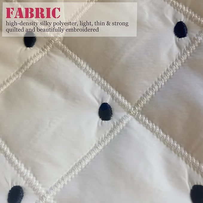 HAPPYHEIDI Aesthetic Quilted Makeup Bag Cosmetic Travel Pouch Purse Organizer, Canvas Lined, Cute Embroidery Diamond Dots Creamy White Silky Polyester