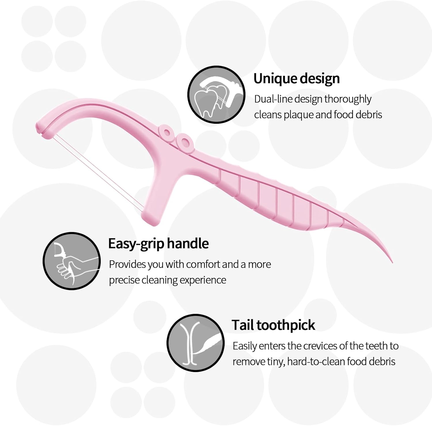 - 👍Exquisite, Dractical: Dental floss bar comes with a toothpick at the end and an ergonomic handle with a non-slip design that ensures gentle and thorough cleaning without damaging the gums.
