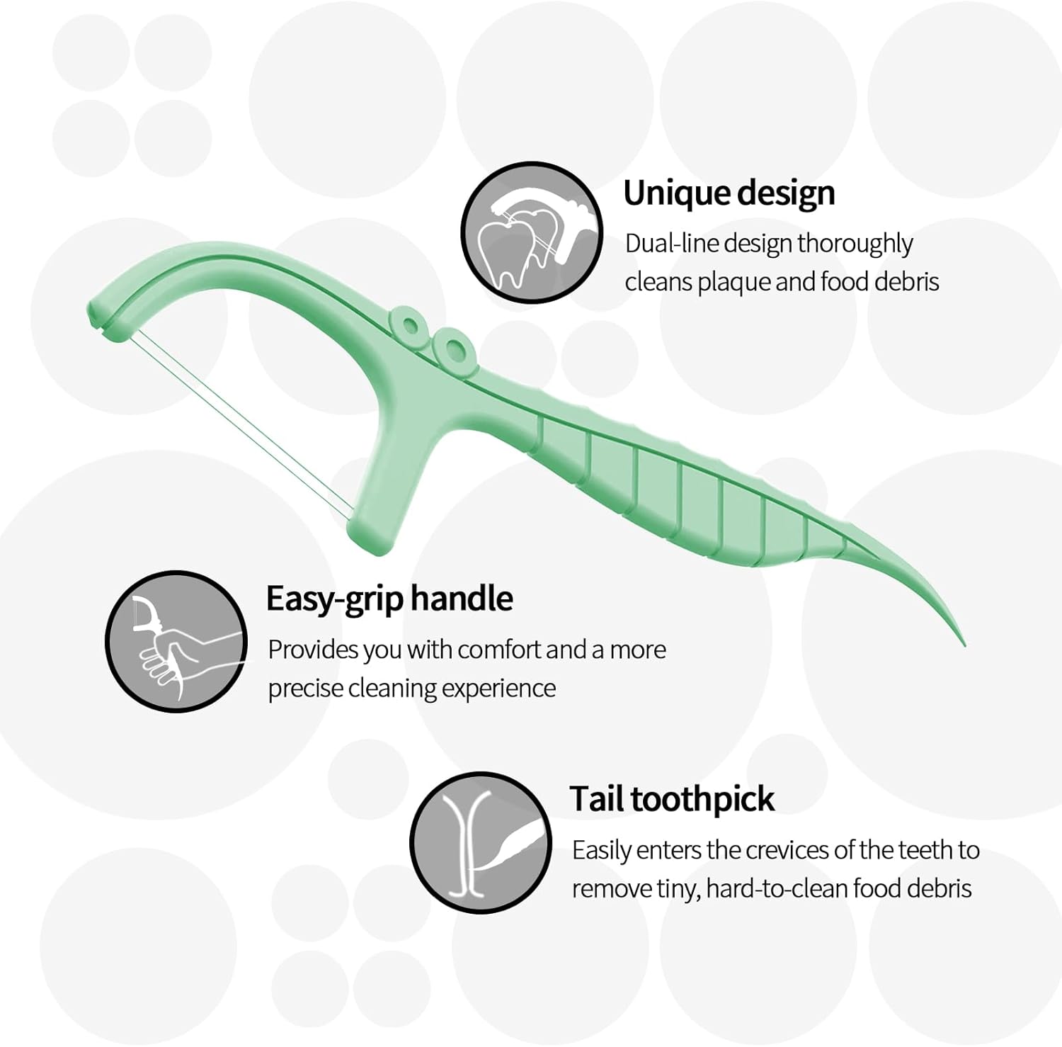 - 👍Mint Flavor Double Cleaning Action: Floss picks are designed with dual strands for effective cleaning, while the refreshing mint flavor enhances the overall experience.
