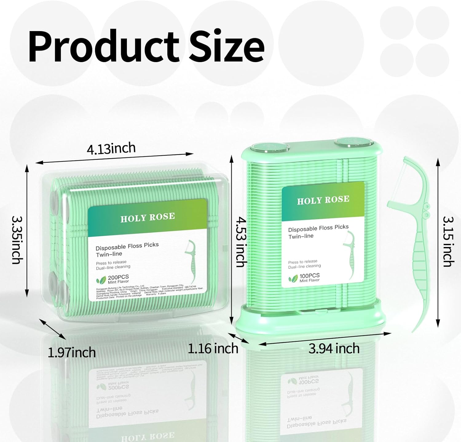 Holy Rose Dental Floss Dispenser and Flossers Storage Case Combo - with 100 Floss Picks and 200 Refillable - Mint Flavor,Twin Line Desig, for Organizing and Dispensing Dental Floss Stick Container