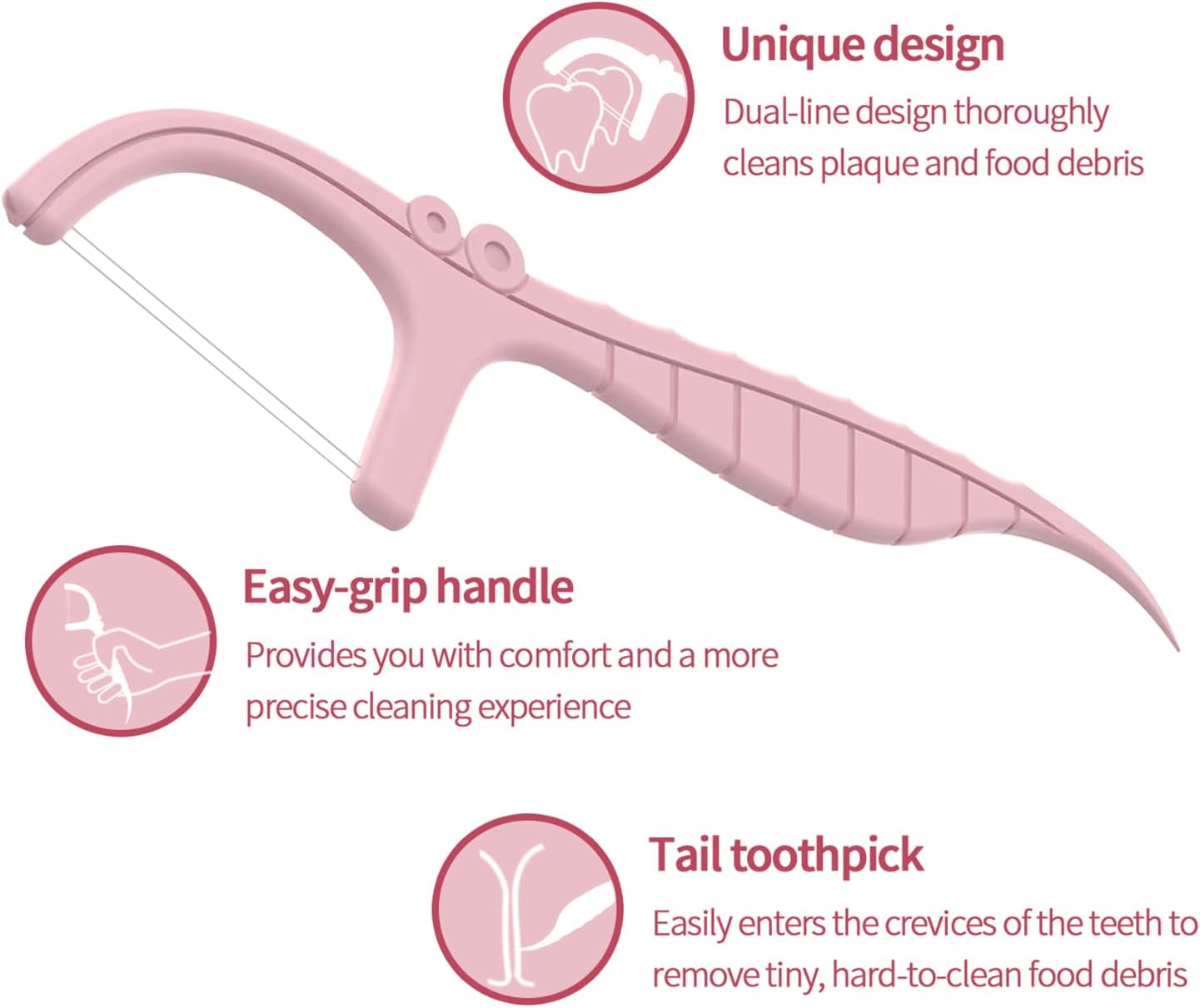 Holy rose Dual-Line Dental Floss Picks - Pink Flossers 300 Count,End with Toothpick - Mint Flavored for Oral Cleaning & Fresh Breath-and Ideal for Daily Teeth Care